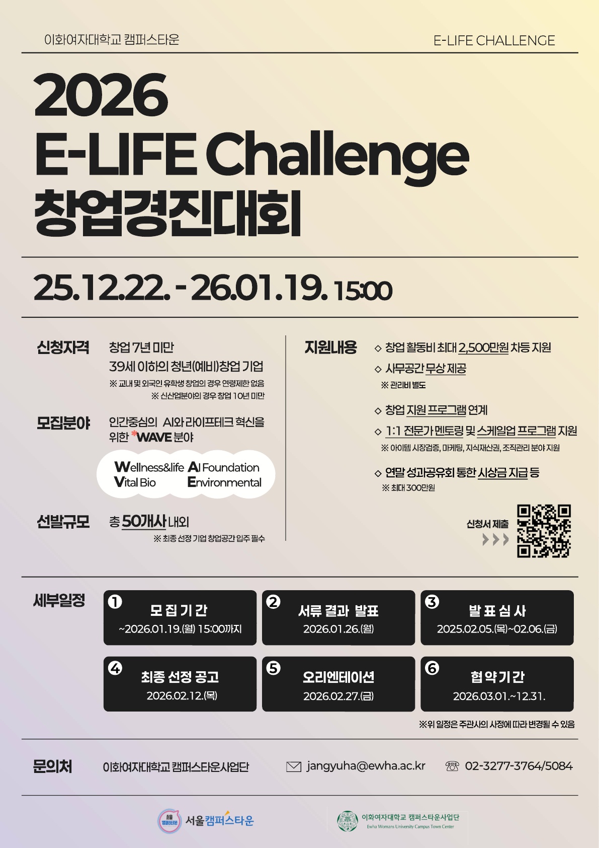 ④ 발표 심사 - 2026. 2. 5.(목)~2. 6.(금) [장소: 이화 스타트업 오픈 스페이스 예정]